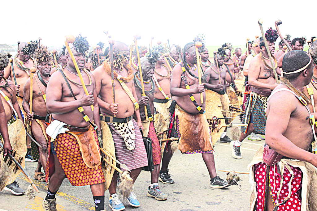 The king said he was impressed by Libutfo as they made light work of the march, maintaining the same tempo and form from start to finish. Warriors from Inyatsi, Inkhanyeti, and Umgadlela regiments kicked off the day by enjoying the spoils of the previous day’s hunt.