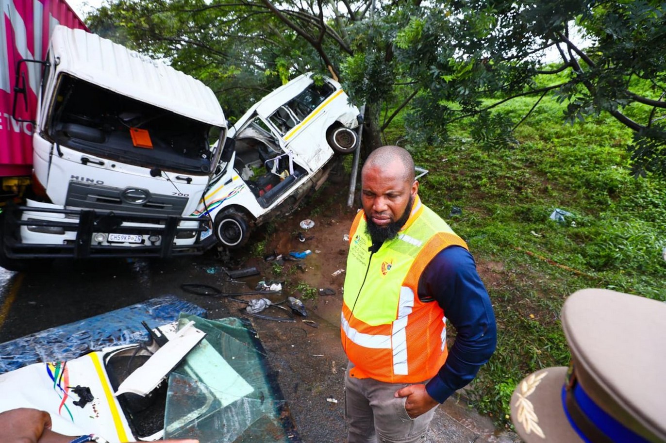 KwaZulu-Natal transport and human settlements MEC Siboniso Duma is at the scene of a crash between a truck and taxi near Lotus Park, south of Durban on Thursday in which 11 people died.(KZN DOT)