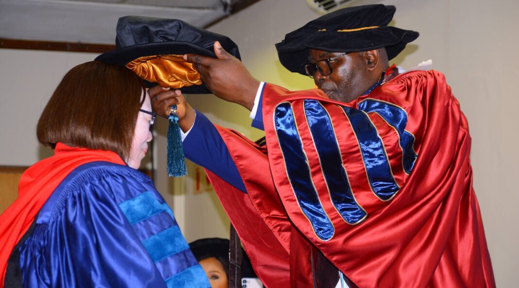 The honorary degree was conferred during a ceremony held at The George Hotel in Manzini yesterday, attended by the Minister of Education and Training Owen Nxumalo, Minister of Information, Communication and Technology Savannah Maziya, Senator Dr Linda Nxumalo, members of the Gideon Robert University council and faculty, as well as other distinguished guests.