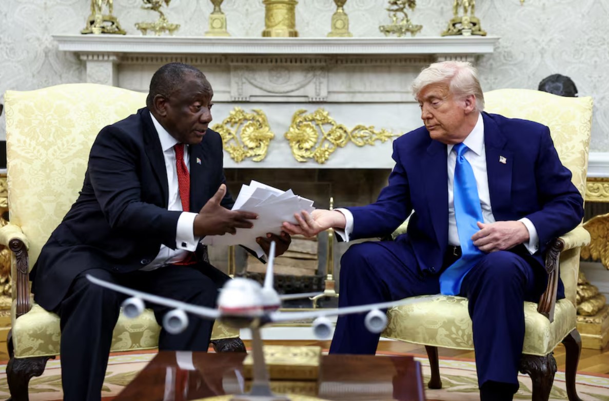 WASHINGTON, May 21 (Reuters) – U.S. President Donald Trump confronted South African President Cyril Ramaphosa at the White House on Wednesday with allegations of mass killings and land seizures from white people, in a scene reminiscent of his February ambush of Ukraine’s Volodymyr Zelenskiy.